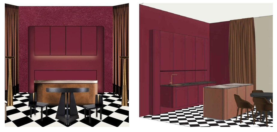 • Анастасия Ковальчук представит кухню «Бургундский кутюр» — ода сдержанной роскоши, где фасады цвета спелого вина, остров из благородного дерева и современное искусство создают атмосферу аристократизма. Среди участников — Студия PROКУХНИ, Ligron, Systeme Electric, дизайн-студия ENIGMA, арт-проекты RDart.