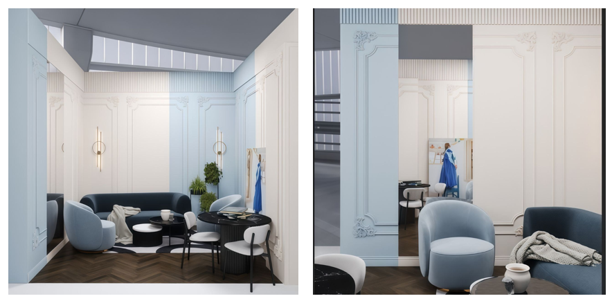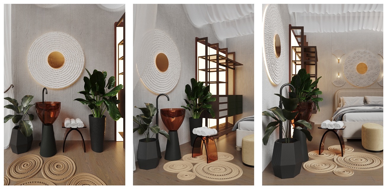 • Юлия Трепалина раскрывает тему «Культура Запада — Сердце Востока» через образ комфортабельного номера отеля в тропических джунглях. Интерьер сочетает западный минимализм и восточные акценты, включая прозрачные стены, гармонию с природой и высокотехнологичное оснащение. Среди участников — Ligron, Systeme Electric, PLYUS Furniture, DEKOtextile, METTA, ABBER.