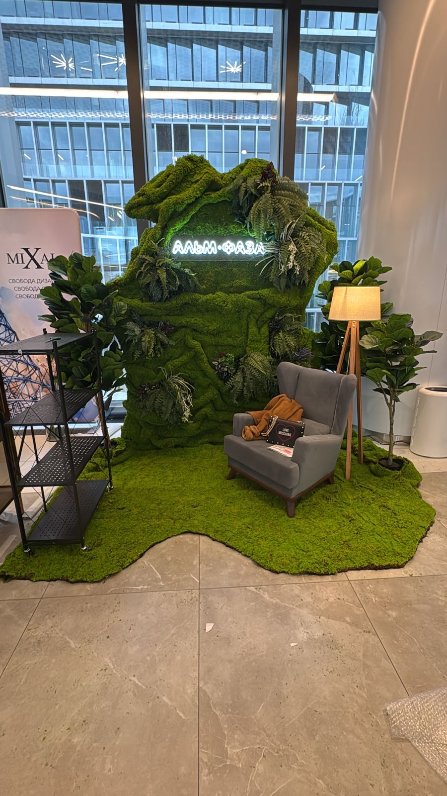 Искусственный мох, деревья в кашпо, деревья в панелях, выставочный и офисный ковролин, линолеум